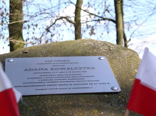 4. Pomnik z krzyżem – tablica z dwujęzyczną nazwą miejscowości (koncepcja P. Pojasek i Rafał Siwiński; wykonanie Tadeusz Burawski z Wronek)
