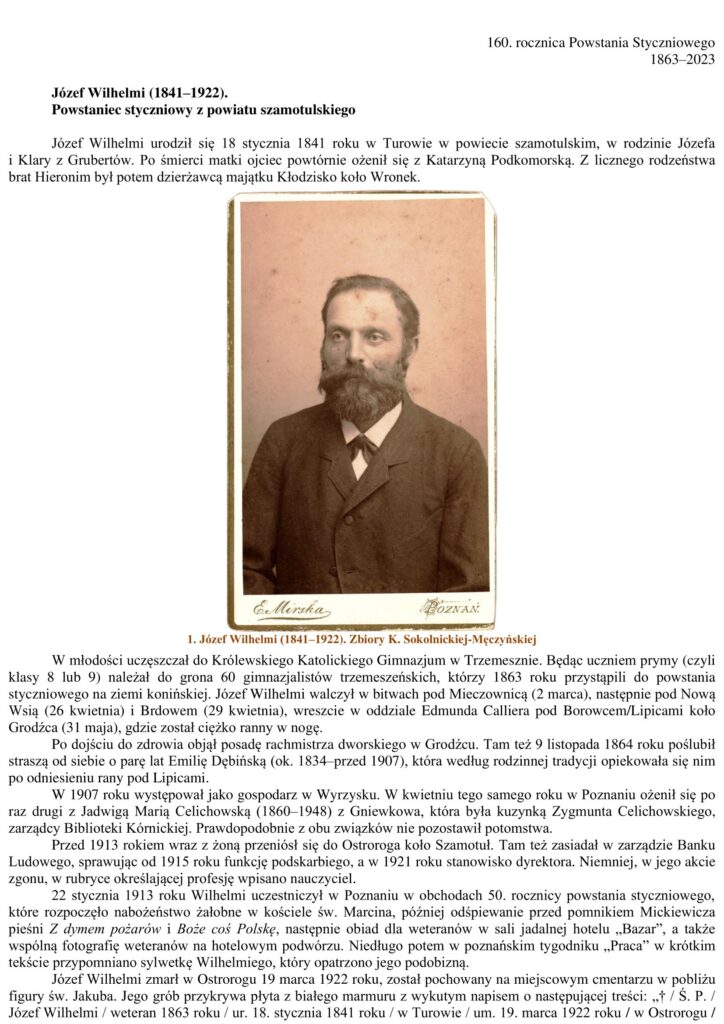 Historia Ludzie Józef Wilhelmi (1841–1922).Powstaniec styczniowy z powiatu szamotulskiego przez Piotr Pojasek|Opublikowano 28 lutego 2023
